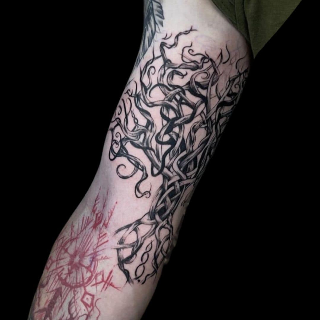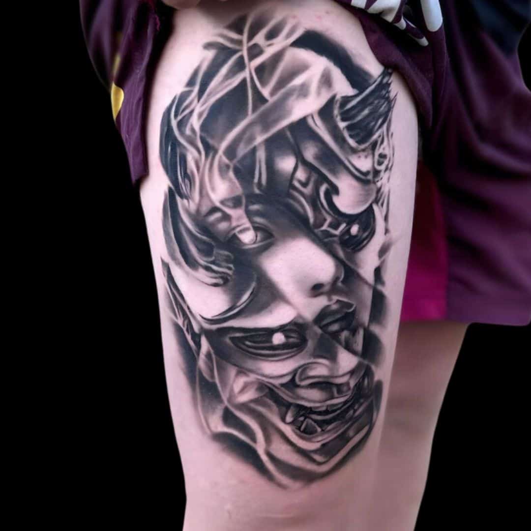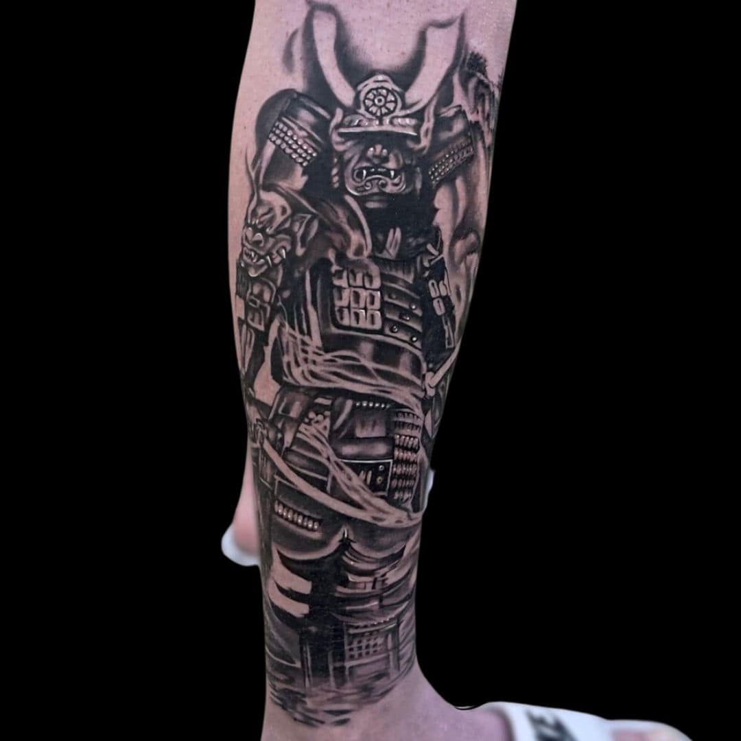 TJ’s tattooing style ranges from intricate black and grey portraits to traditional Japanese dragons, koi fish, and samurai. His gothic work is characterised by dark, haunting elements, while his script designs flow with precision and elegance. He blends neo-traditional boldness with fine detailing, creating pieces that stand out with their unique fusion of styles.