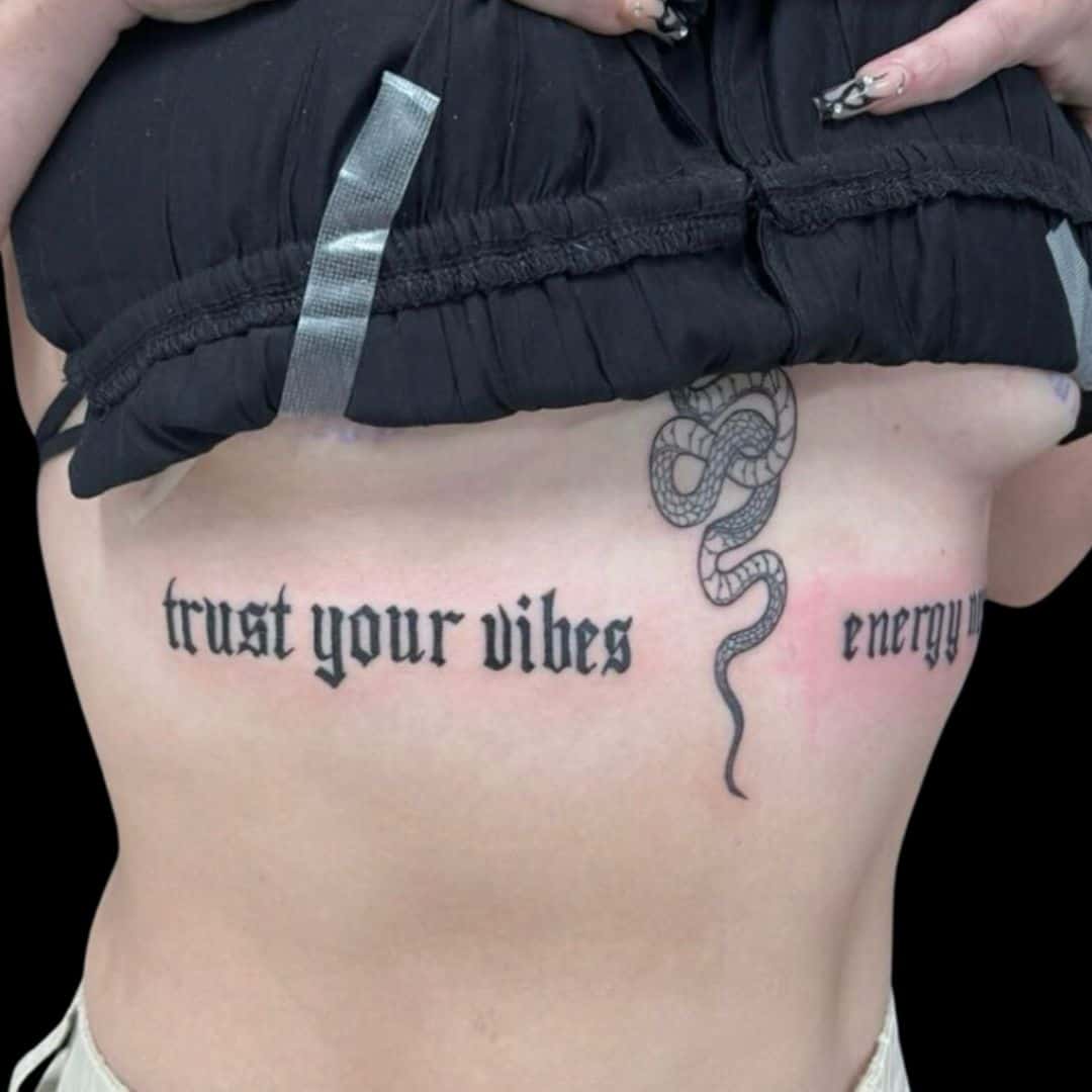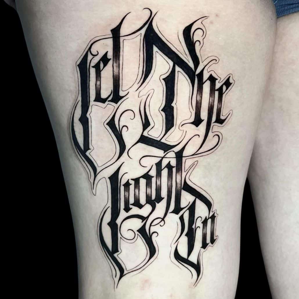 Dark script tattoos delve into more eerie and sombre themes, perfect for phrases or words that evoke a sense of mystery or foreboding.
