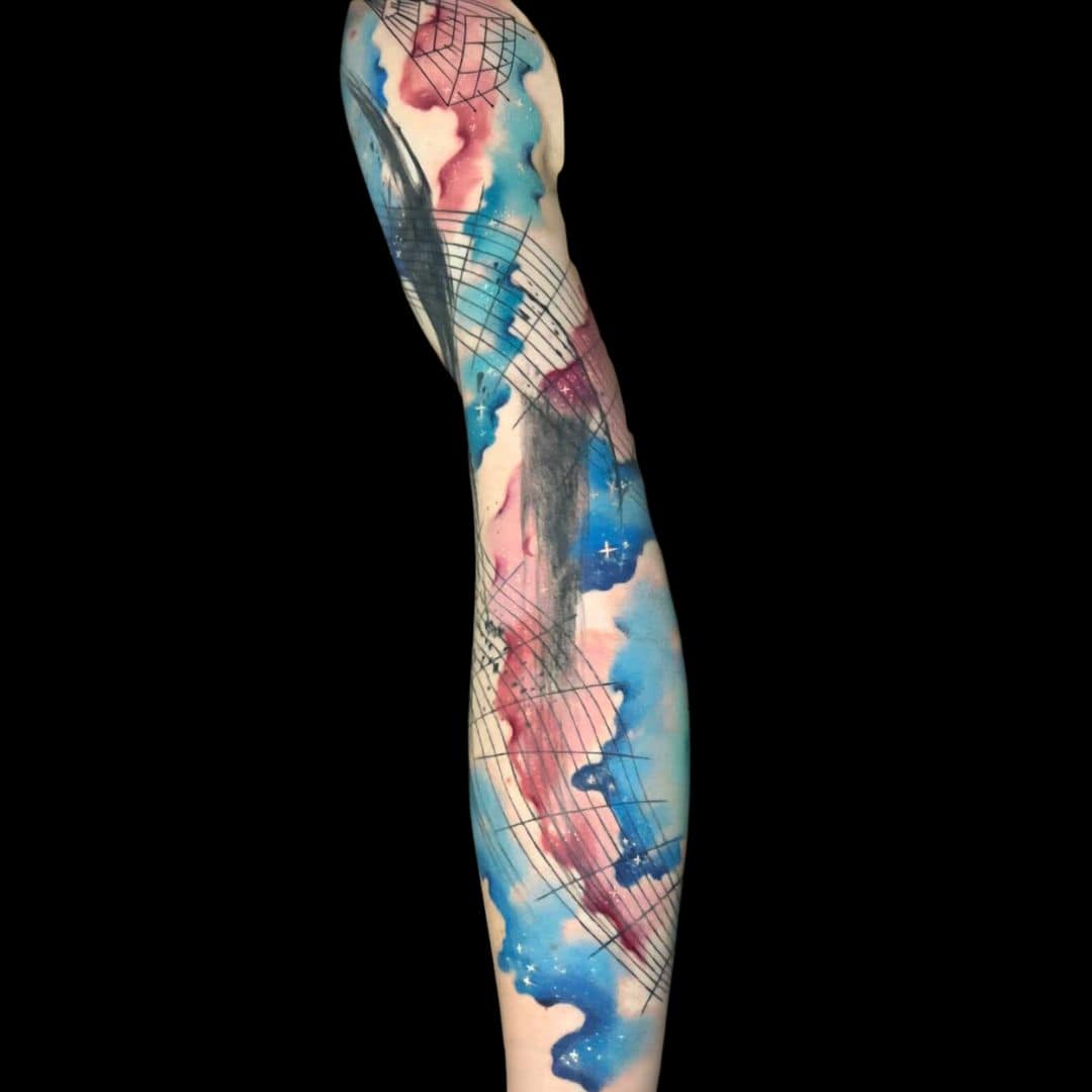 Abstract watercolour tattoos embrace the freeform and expressive nature of watercolour art. These tattoos often feature splashes of colour, fluid shapes, and creative compositions that don’t conform to traditional tattoo styles.