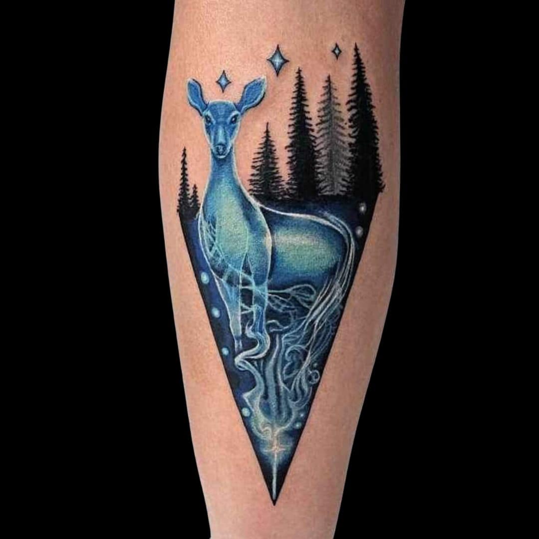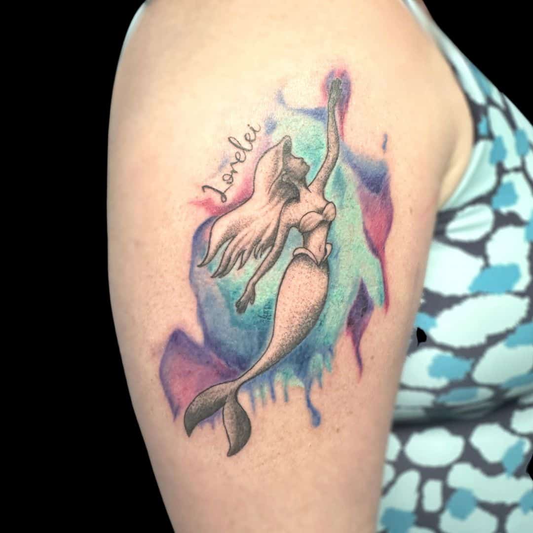These tattoos often feature mythical creatures, enchanted scenes, and whimsical elements, all brought to life with the fluid and ethereal style of watercolour art.